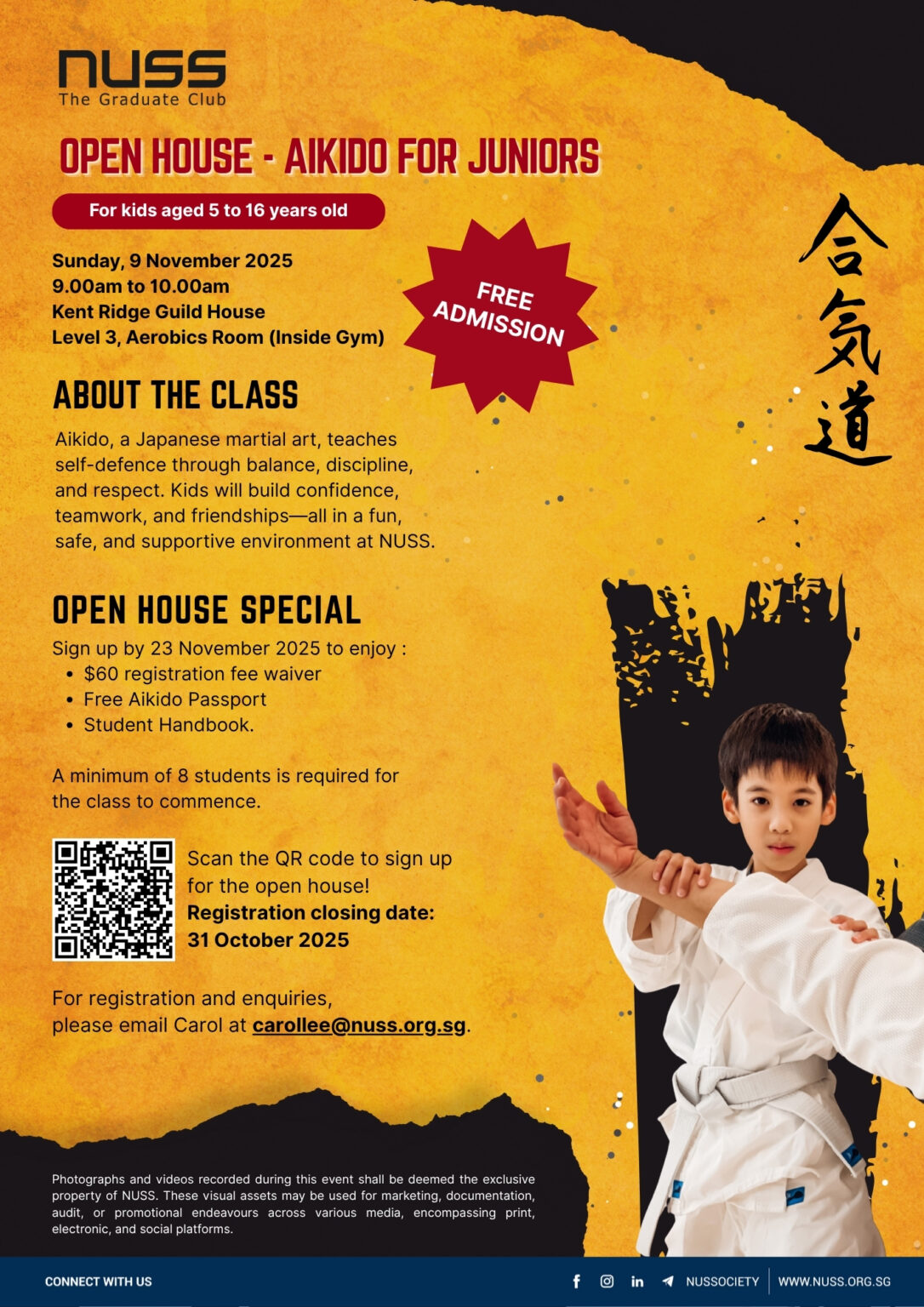 Aikido, a Japanese martial art, teaches self-defence, through balance, discipline, and respect. Kids will build confidence, teamwork, and friendships – all in a fun, safe and supportive environment at NUSS.